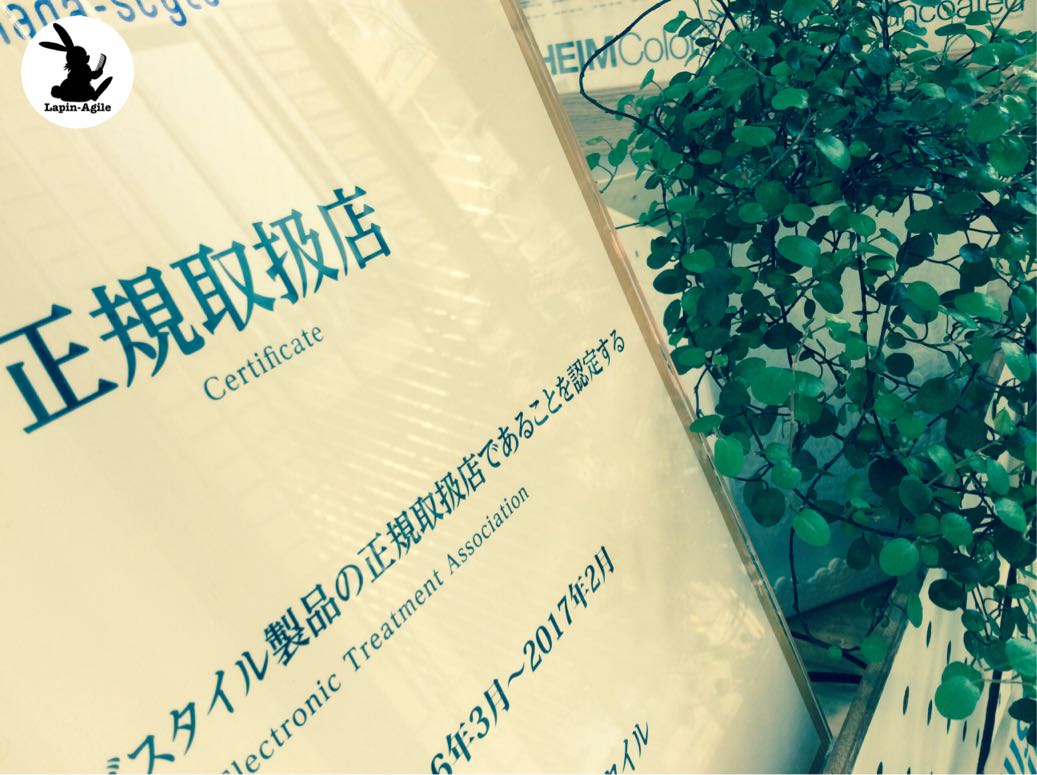 メーカーと契約している全国のサロンの中から1000件しかもらえない認定証らしく、なぜウチみたいな小さなサロンが?って気もしますがもらえてうれしいので店内に飾ってあります。