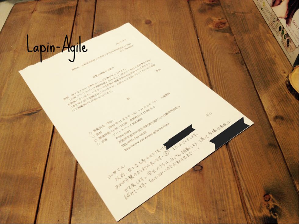 夏にラパンアジールに来てくれた子が自分の作品の展示をするそうだ。